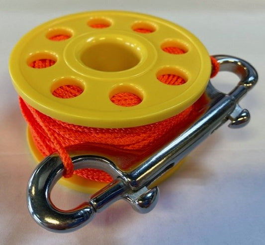 Finger Reel Yellow With Orange Nylon Rope 100FT With Stainless Steel Double End Clip