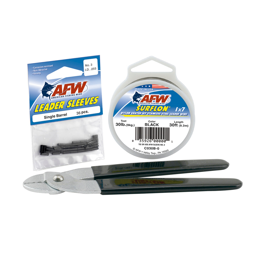 - 30 ft (9.2 m) spool of 30 lb (14 kg) black Surflon 1x7 leader wire