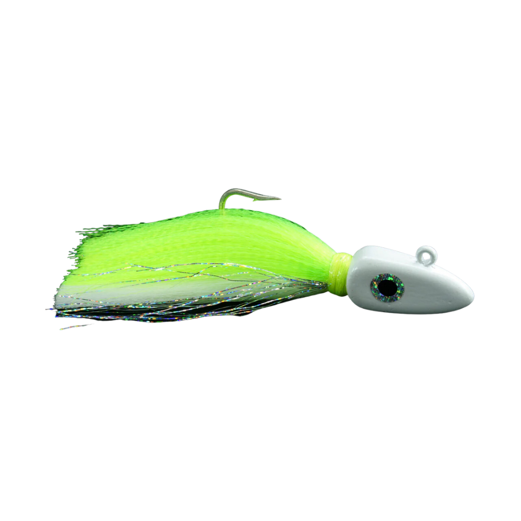The Arrowhead Jig features a flat-sided, arrow-shaped head with baked-on paint, large eyes, a forged hook and a durable nylon body with mylar streamers. It’s ready to do battle with powerful fish. A popular jig for catching grouper, snapper, amberjack, cobia and kingfish.