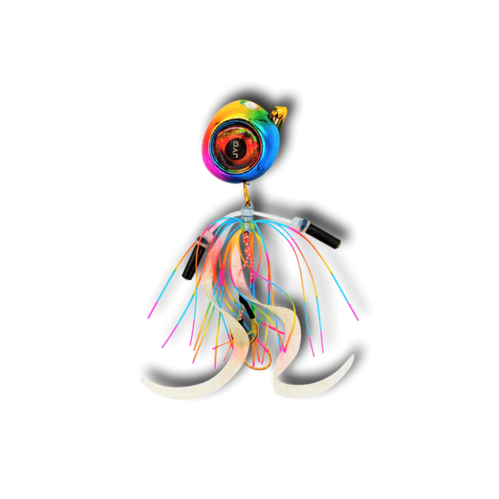 4. **Iridescent Eyes:** The "EYEDROP" name isn't just for show – our jigs feature mesmerizing iridescent eyes that add an extra layer of realism to your presentation. These eyes catch the light and create a captivating visual illusion, making your jig look like the real thing. It's a feature that sets our collection apart and enhances its allure.