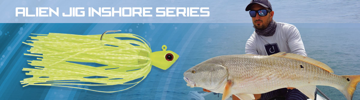 Inshore Series is available with or without skirts and comes in 4 sizes. Great on all inshore species including: red fish, trout, flounder and Spanish Mackerel.
