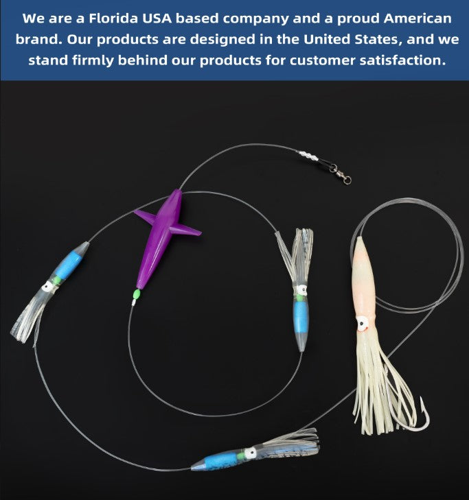 - Daisy Chain: This quality daisy chain consists of three 6-inch squids, one 9-inch squid, one trolling bird and various accessories.