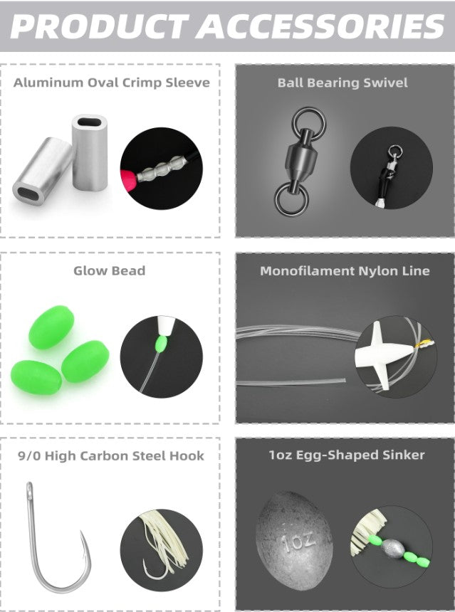 - Sharp Hook: The daisy chain is equipped with high carbon steel 9/0 hook with barb, which is strong, anti-rust, and corrosion resistant, for improved hookup and landing ratio.