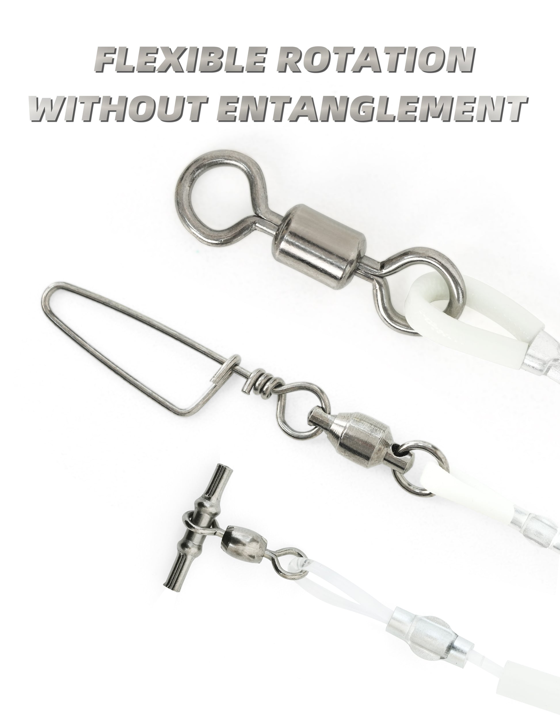 Premium Quality:Crafted from high quality, durable and corrosion-resistant, bringing you a pleasant fishing experience.Glow Tubes:Equipped with glow tubes, it can glow in the dark and has a strong attraction for fish.Barrel Swivel:Equipped with barrel swivel for flexible rotation to prevent entanglement during use.Sharp Hook: Sharp stainless steel hooks can easily penetrate fish.Application: Suitable for saltwater and freshwater fishing, such as snapper, tileifsh, grouper.