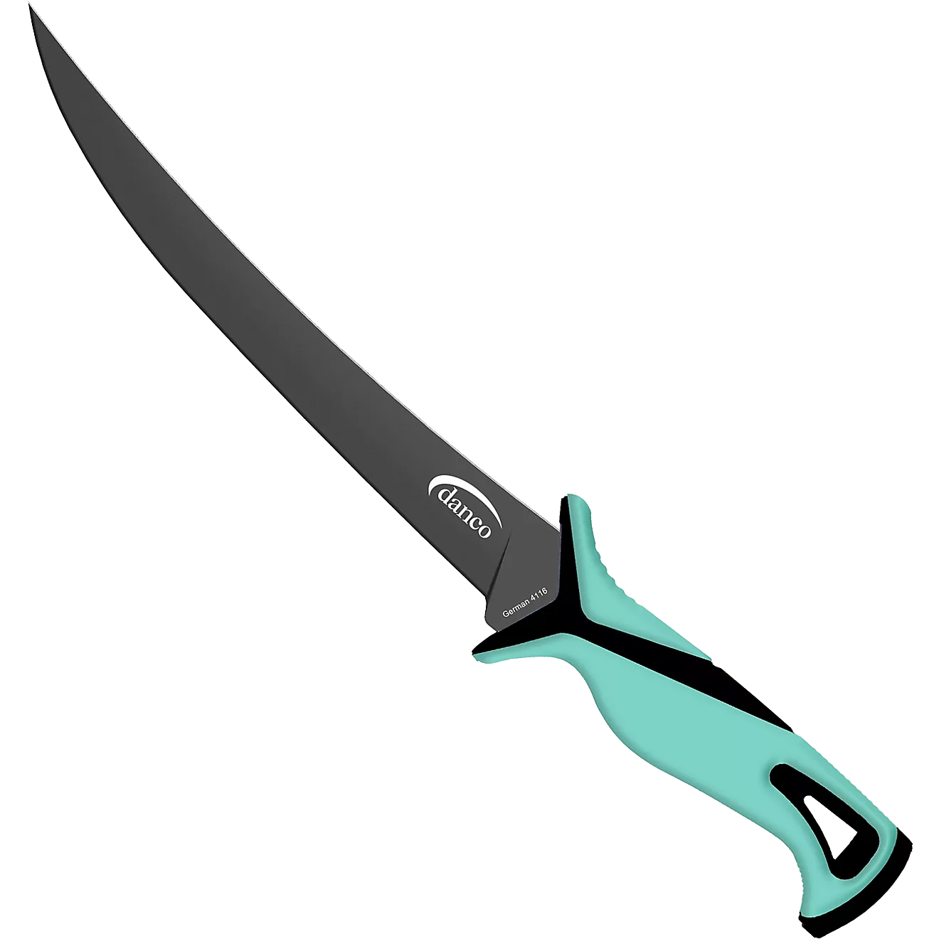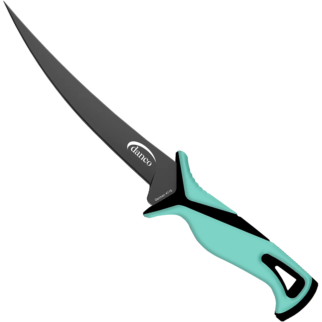 Designed with a solid German 4116 steel blade, the Danco Sports Pro Series Flex Knife helps you make sharp cuts with ease. The knife features Teflon coating to resist corrosion and a dual-molded, textured handle that allows a comfortable grip in wet or humid conditions. Sheath included.