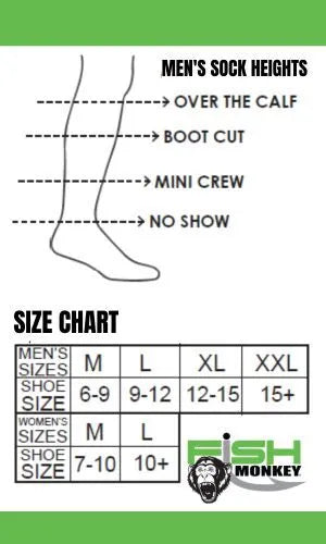The Guide Series Tab No Show is our premier line of moisture wicking, premium cushioned, light-weight Merino Wool performance fishing socks. Featuring UltraSpun® Polyester body and Merino Wool Heel/Toe, ventilation panels, arch compression, and a cushioned heel and toe. Plus, a seamless toe prevents chafing! Perfect weight for warm weather and humid conditions.