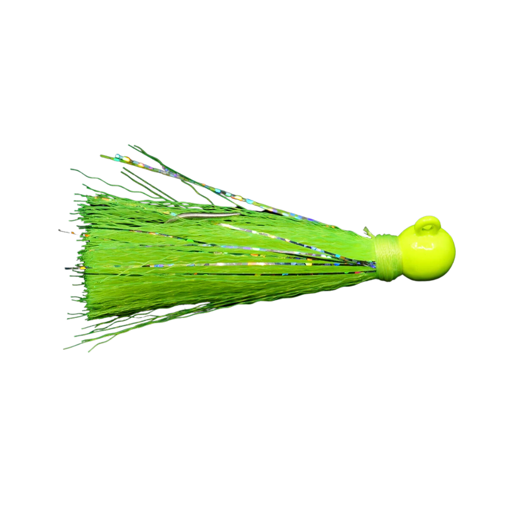 The ball-shaped head, short nylon skirt and flashy Mylar strips make the Yellowtail Jig irresistible to yellowtail snapper and pompano. The Yellowtail Jig also catches Spanish mackerel, jacks as well as other inshore and nearshore fish.