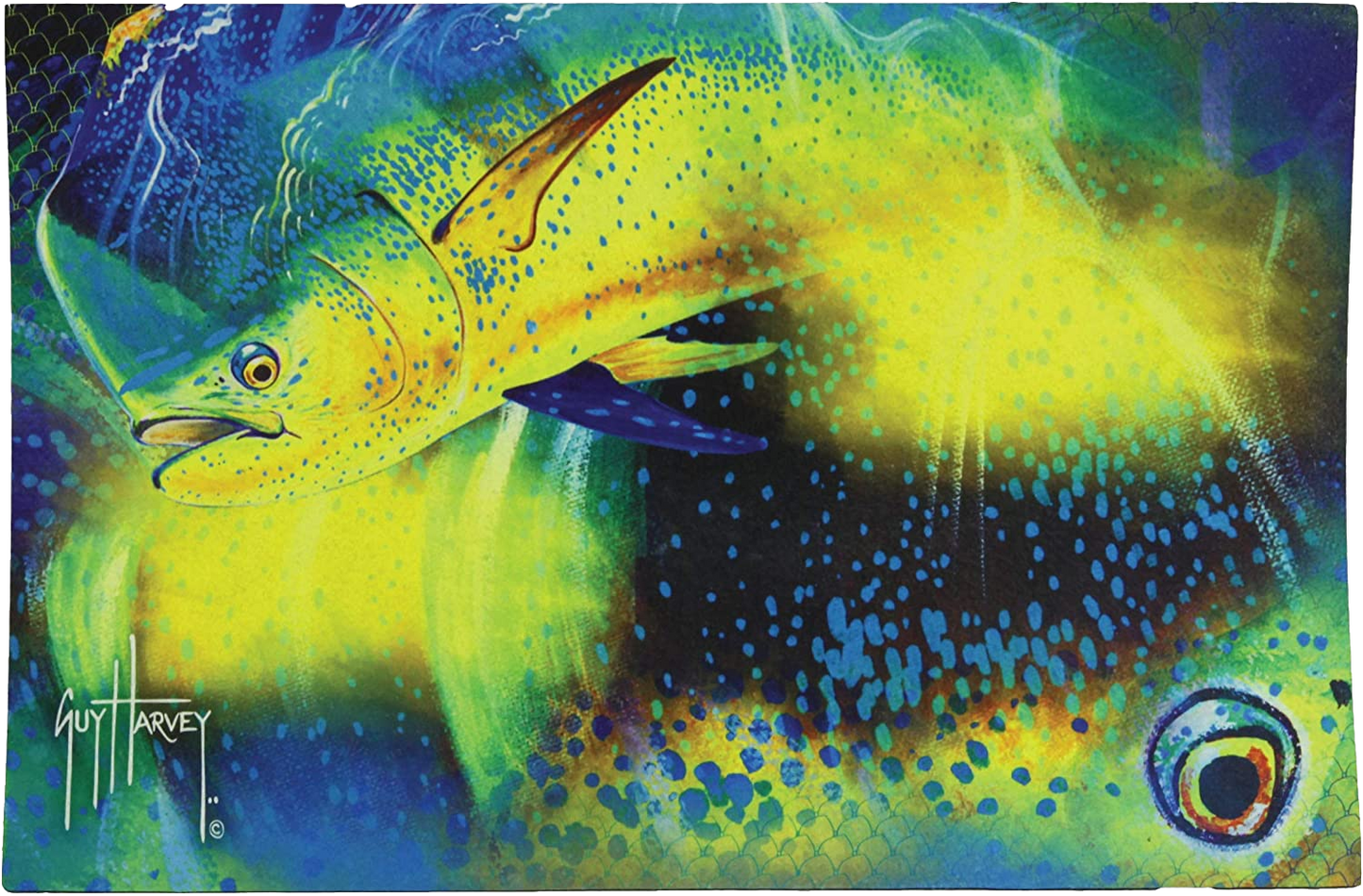 Welcome guests in gorgeous style with this River's Edge® Guy Harvey® Door Mat. Suitable for indoor or outdoor use, the vibrant, high-definition Guy Harvey artwork is heat-transfer printed with UV-inhibiting ink for years of use. Constructed from 100% non-woven polyester and backed with 100% rubber, this durable, non-slip welcome mat is sure to wow your guests. 17"L x 26"W.