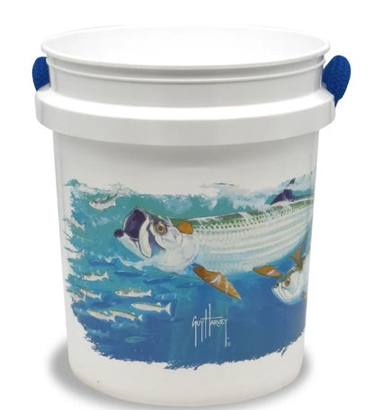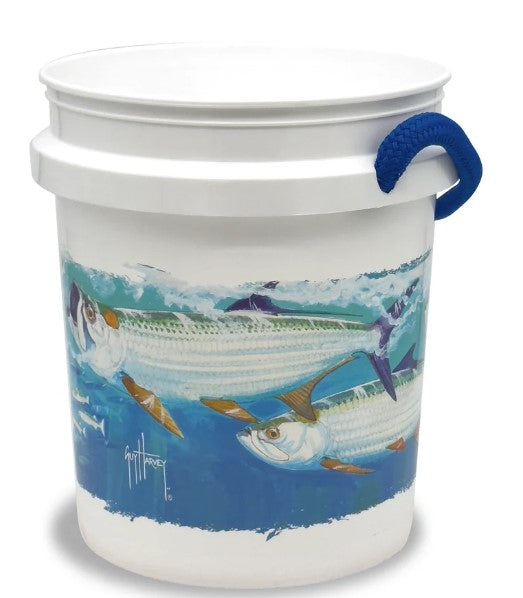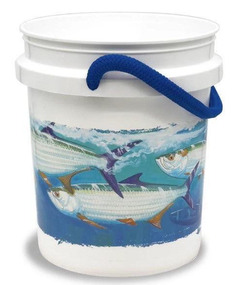 Our custom 5-gallon bucket, now adorned with beautiful Guy Harvey original artwork! Featuring a vibrant school of tarpon, this 315-degree wrap-around print is brought to life with stunning clarity and color. This isn't just a bucket—it's a piece of art, complete with all the trusted features that define Shurhold's commitment to quality: a robust rope handle for easy carrying, the ability to stack without leaking, and the durability to stand up to the rigors of marine use. Whether for practical use on deck or as a collector's item, this bucket is perfect for you!