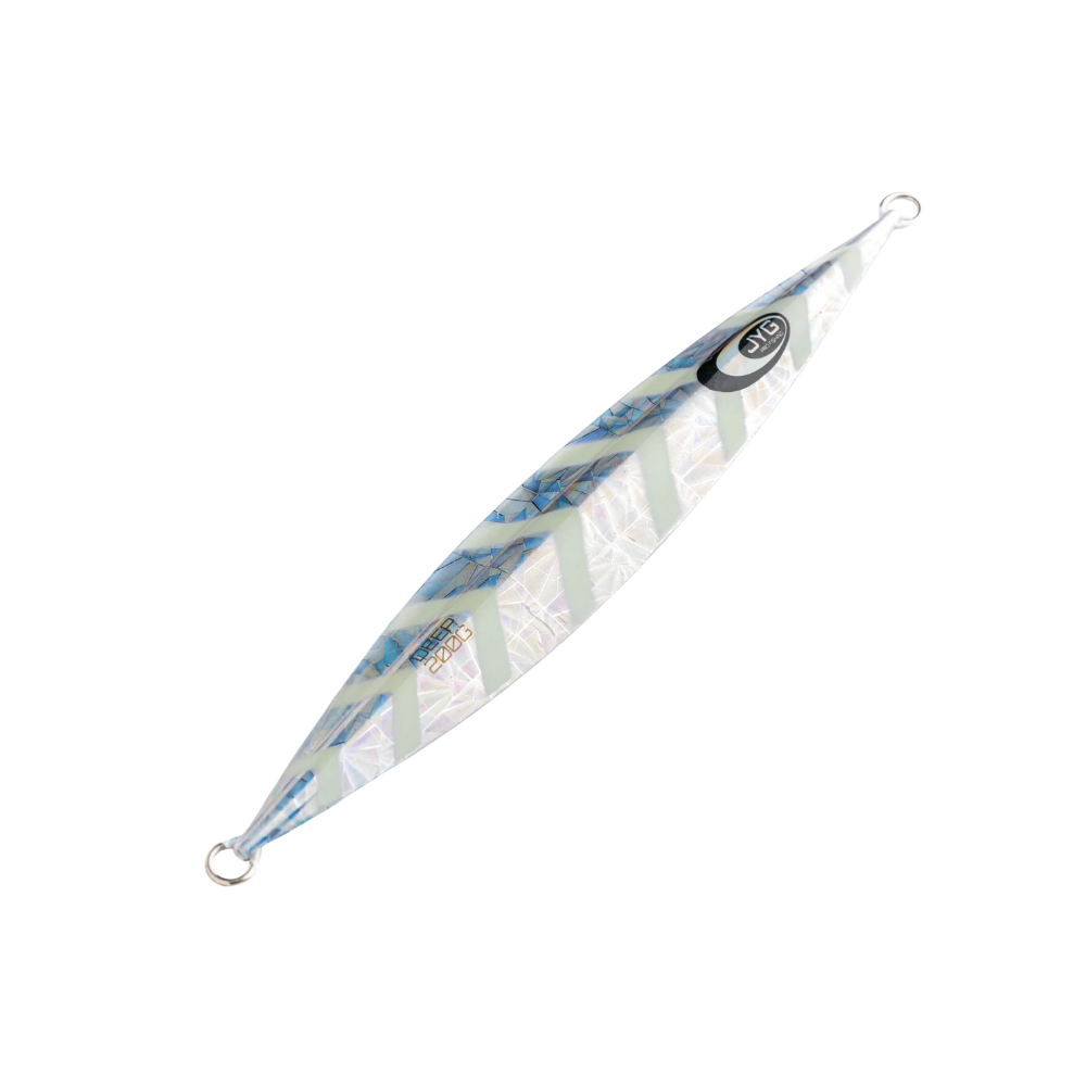 Ideal conditions include depths ranging from 100ft to 800ft, based on the weight of the JYG. Because of its shape, the current makes an impact. The ideal current speeds range from 1 kt to 3 kts. Perfect for Slow Pitch Jigging