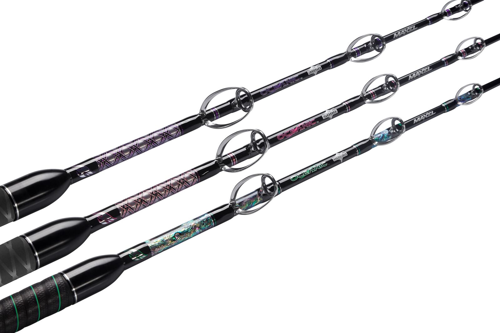 The Oceanic series trolling rods are created to satisfy the diverse needs of the big game anglers. Featuring the carbon composite rod blank with Fuji premium heavy duty trolling guides, the Oceanic rods are ideal for fighting the most powerful species on lighter lines. The Oceanic Twist models are specifically designed with Spiral-wrapped guides for increased balance and stability.