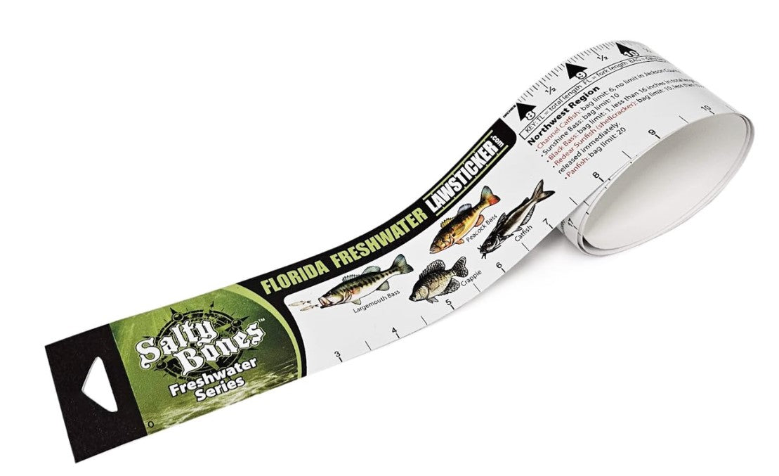 - Includes one Salty Bones Florida freshwater fishing ruler sticker (lawsticker).