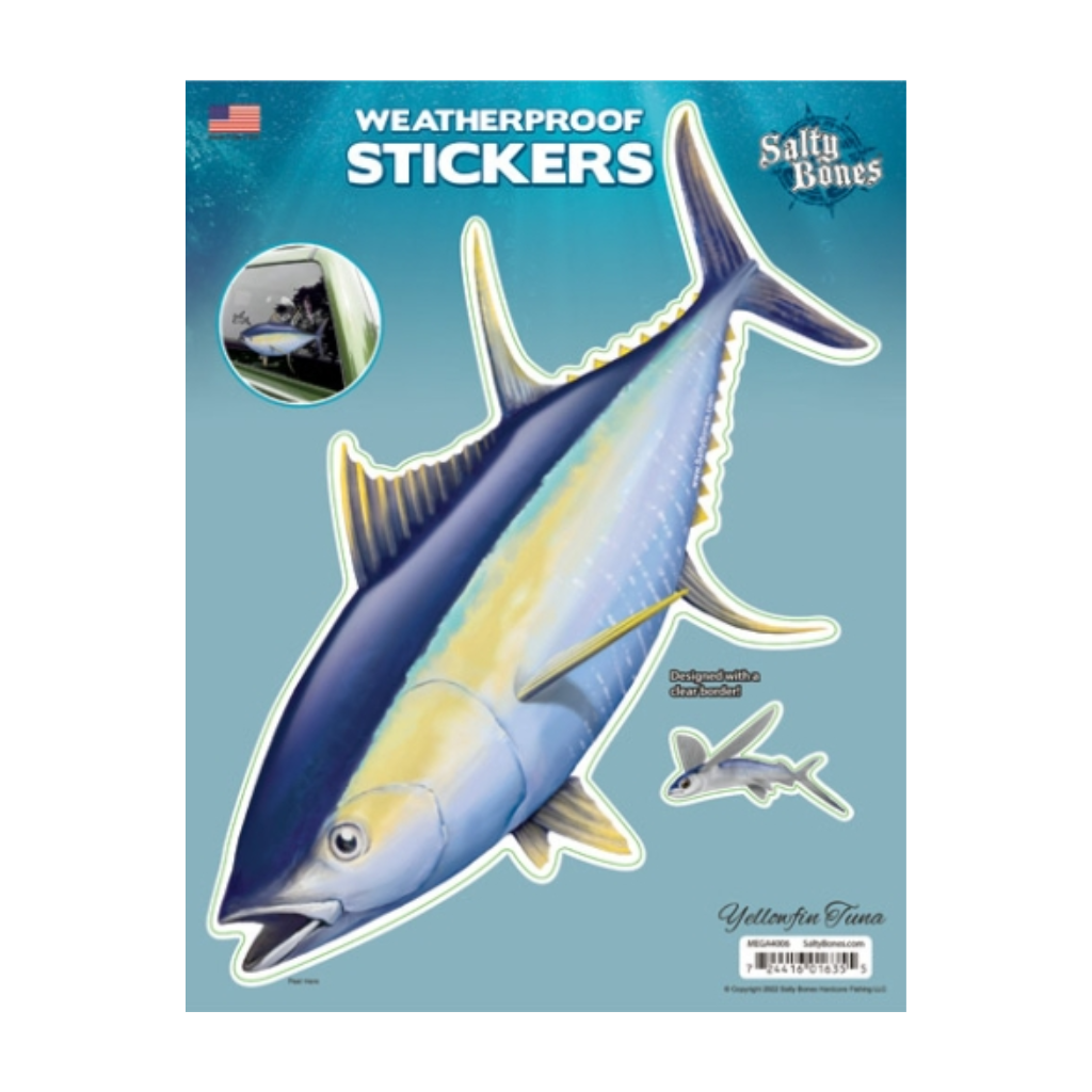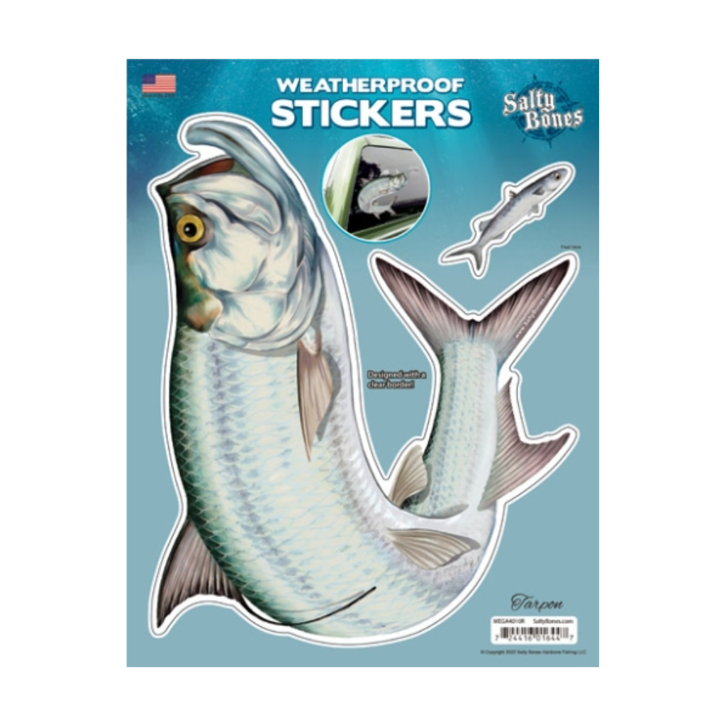 Salty Bones Mega Stickers are the largest, most detailed stickers we offer! At 8.5" x 11" (including packaging) these stickers are massive. For the very best imagery, all of our designs are printed at high resolution on clear vinyl, giving the art a brilliant clarity with no visible border.