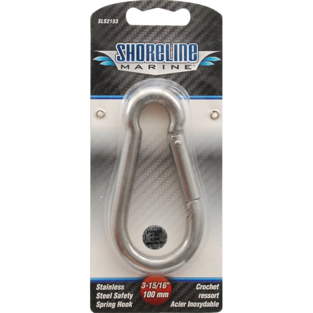Shoreline Marine Safety Spring Hooks are made from Stainless Steel and designed with an interlocking tongue for a safe and secure connection.