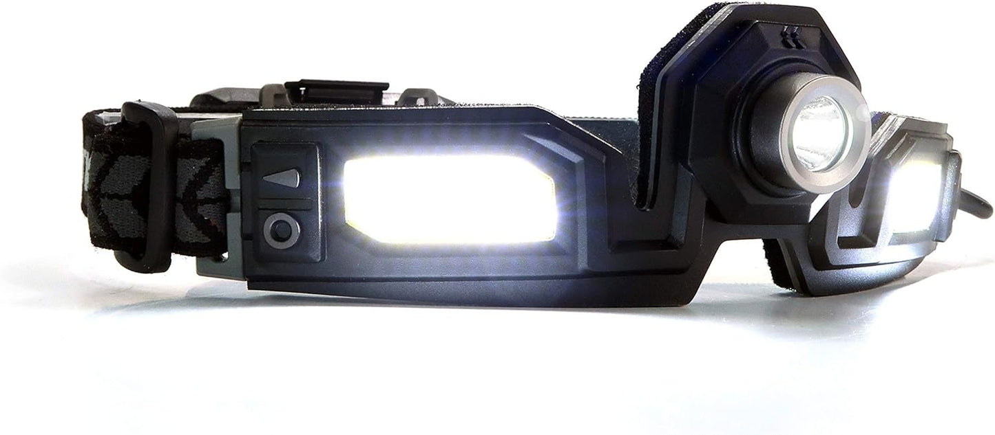 The FLEXIT Headlamp PRO combines comfort & ergonomics with performance & usability. The low-profile design features side mounted C. O. B. flood LEDs that deliver 240° halo lighting, eliminating the tunnel vision created by traditional headlamps. Combined with the power of the adjustable, center mounted CREE spotlight, the user can see well into the distance while also lighting the entire immediate area. The total system emits a blinding 650 lumens.