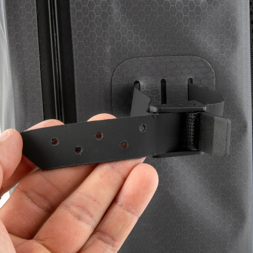 On the exterior of the bag is a mesh side pocket perfect for a water bottle, while the other side features adjustable storage straps for larger items. Strategically placed D-rings serve as convenient attachment locations for accessories. All in all, the SaltX Waterproof Backpack is feature packed and well-constructed to have you prepared for many adventures to come.