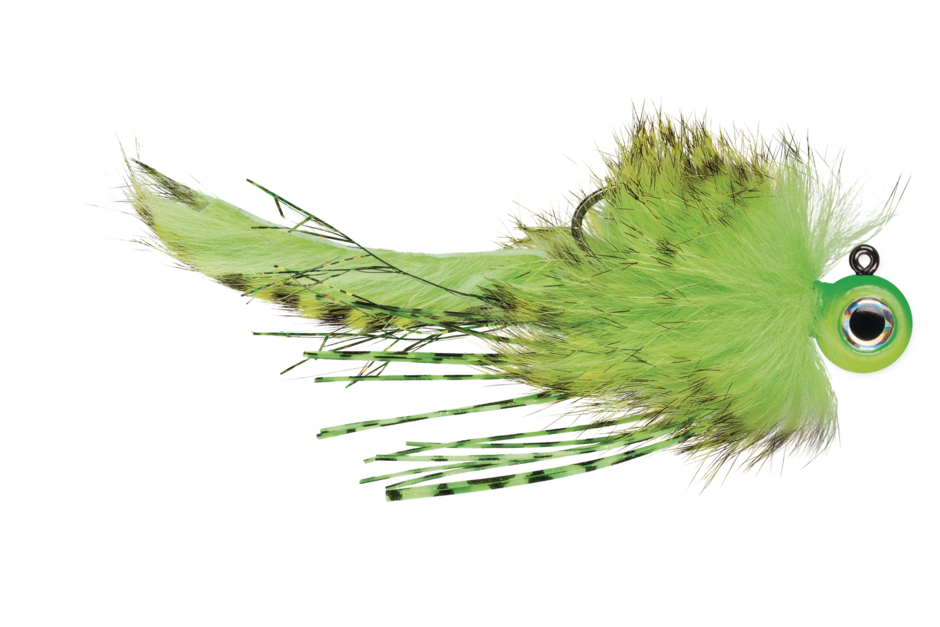 TechSet® technical locking curve maximizes hook sets and locks fish in place. Moon eye shaped jig head provides added control and balance for a variety of jigging, swimming, twitching and popping techniques. Premium rabbit hair body and strip tail with tinsel fibers, Flashabou and living silicone accents to enhance visual attraction.