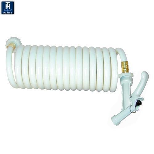 T-H Marine Wash Down Coiled Hose - 25' - White - Pistol Grip Nozzle.